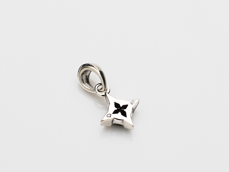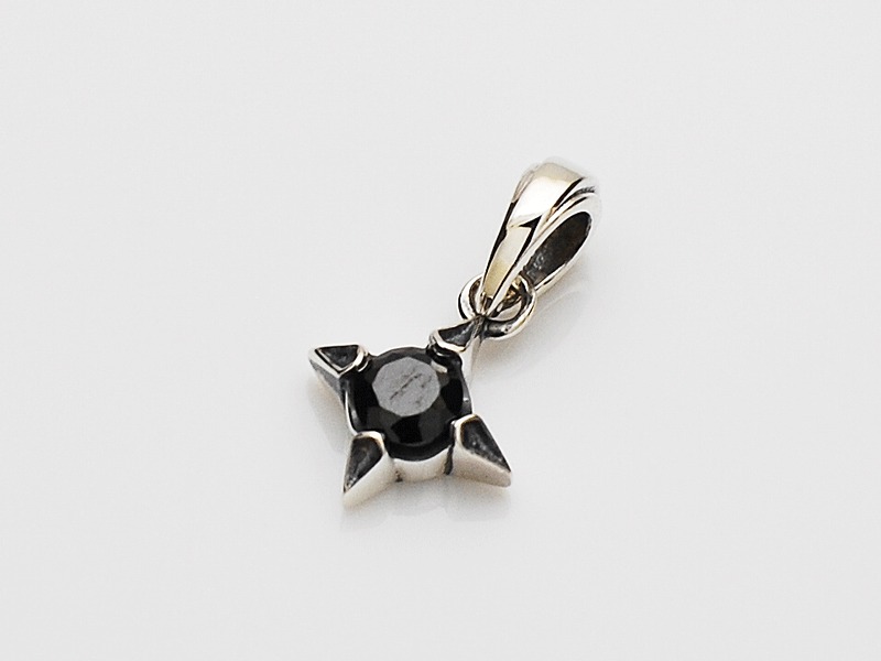 ◆菱形にデザインされた爪でブラックジルコニアを留めているワンストーンチャーム。