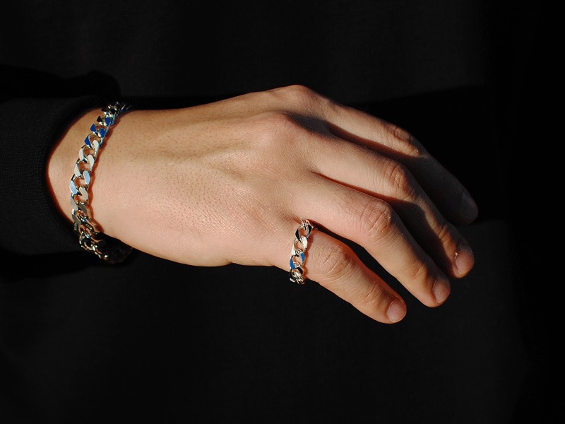 ◆丁寧な手作業でエポキシ樹脂により着色されたチェーンリングはモダンでありながらレトロ感もありヴィンテージな雰囲気を醸し出します。