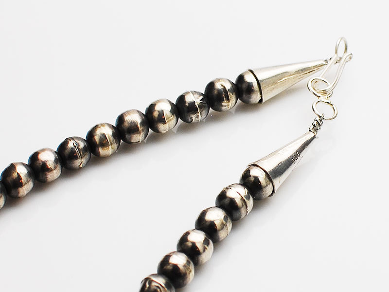 ◆インディアンジュエリーの古くからの定番で日本でも人気のあるナバホパールは、とても手間がかかる作品であったり銀の価格高騰などで製作するアーティストが減った今、機械で作ったパールをネイティブアメリカンが通しているだけでもナバホパールとして高値で販売されていたりもします。