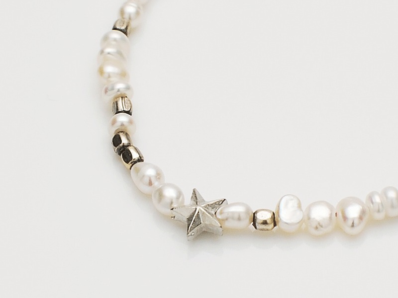 ◆様々な形状の小さな淡水真珠とメタルビーズを組み合わせたクレイジーシードパールブレスレット。