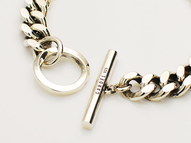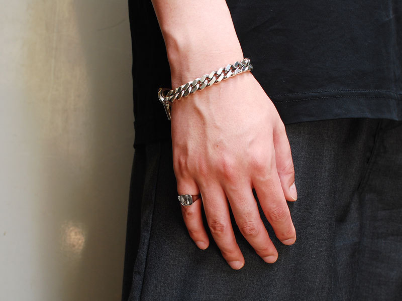 ◆幅10mmのボリュームのある喜平チェーンをベースに、リング部分とティーバーにスタイリッシュなデザインが映えるブレスレット。
