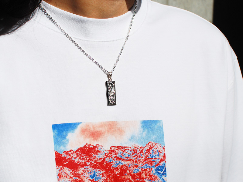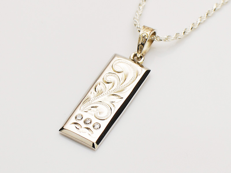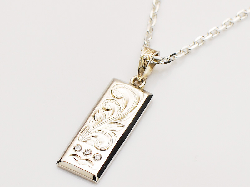 ◆ハワイアンジュエリーの定番モチーフ『プレート』をデザインしたペンダントで、彫り模様には『永遠に続く幸せ』を意味するスクロール(波)の柄が刻まれております。
