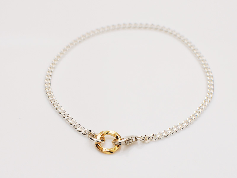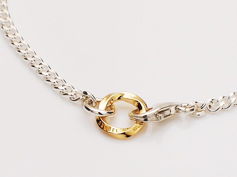 ◆シンプルで飽きのこない喜平チェーンをベースに、18金製ストリームデザインのオリジナルパーツをセットしたチェーンブレスレットです。