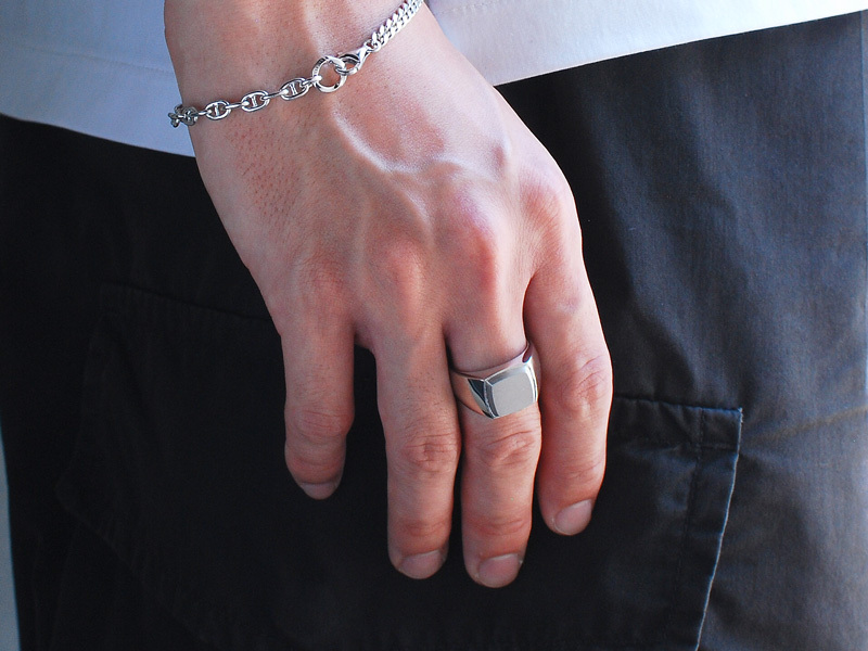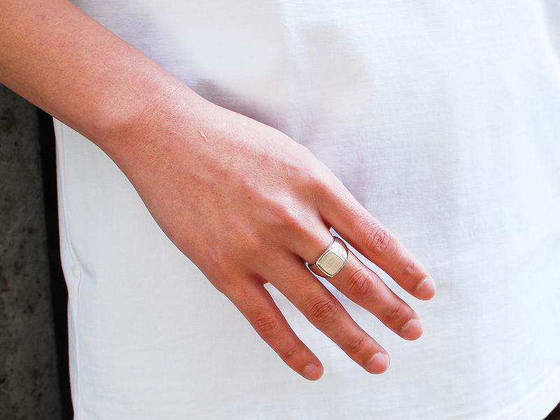◆全てシルバーで製作されたクリーンな印象のSignet Design(印台)のリングです。