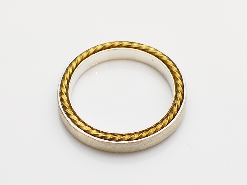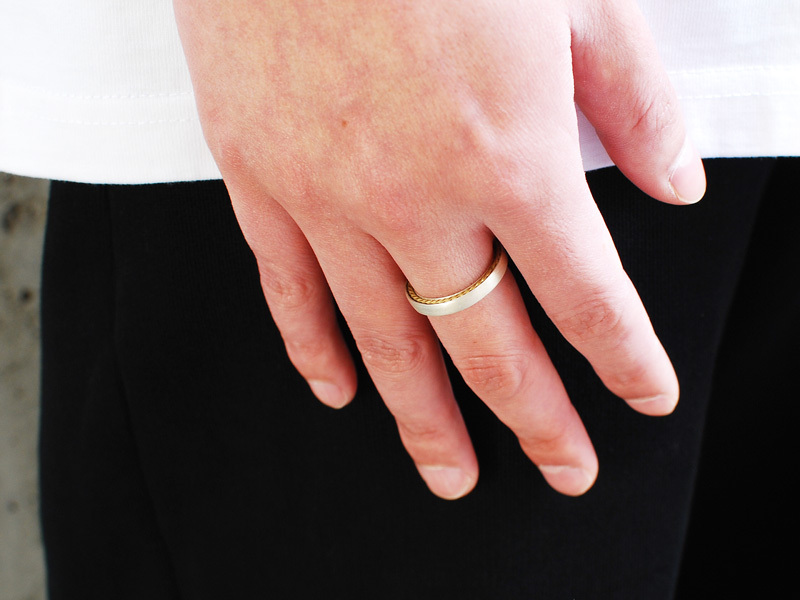 ◆ツイストしたゴールドブラスワイヤーをリングの両サイドにインサートしたリング。