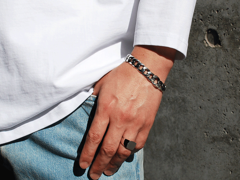 ◆こちらは石無しで細身のオリジナルチェーンを組み上げコーディネートしやすいブレスレットとなります。