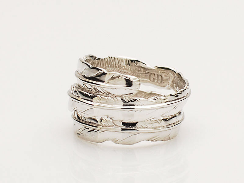 ◆ガーデルで人気のフェザーリング(TRINITY FEATHER RING/GDR-090)の線をバランス良く消して光沢が出る様に仕上げることで、あえてネイティブっぽくならない様に再構築されたファッション感度の高いリングとなります。