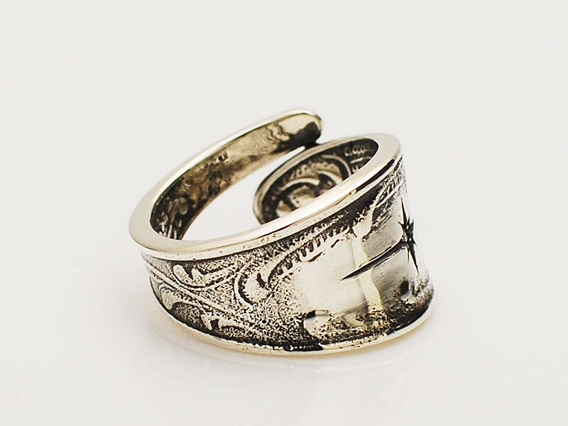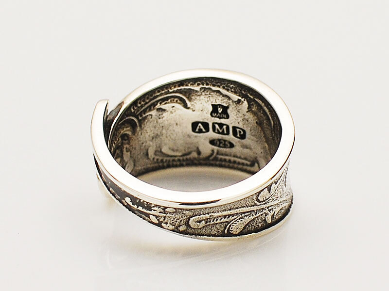 ◆そんな王侯貴族に永く愛された銀のカトラリーをイメージしたリングで、大きく深く掘られた後光彫りの中心でキラリと輝くダイヤモンドが、高貴な雰囲気を漂わせるシルバー製カトラリーピンキーリング。