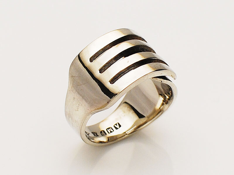 ◆スパゲティーを手で食べていた1770年代に考案された4本歯のフォークをイメージしたリングで、無骨さと繊細さが同居する3本のスリットが特徴的なフォークリング。