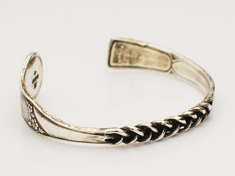 ◆三つ編みされた左右非対称なカトラリーバングル。精巧な手作業によりアンティークカトラリーに新たな命が与えられました。