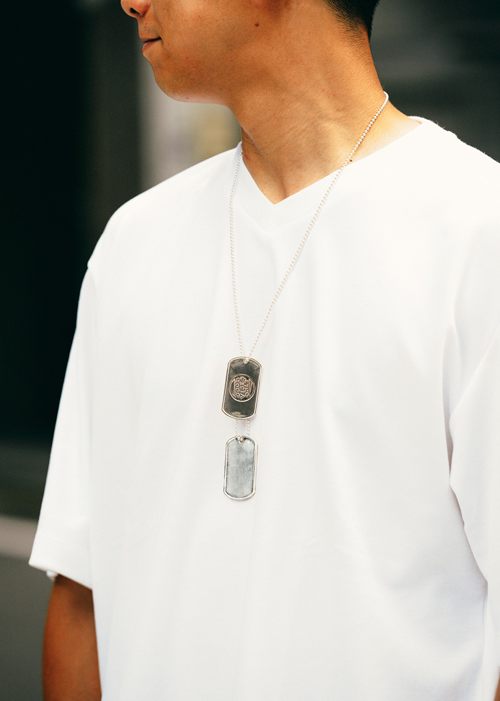 ◆ダブルプレート仕様の場合は2枚共ボールチェーンを直接通し、ドッグタグ本来のスタイルをお楽しみ下さい。
