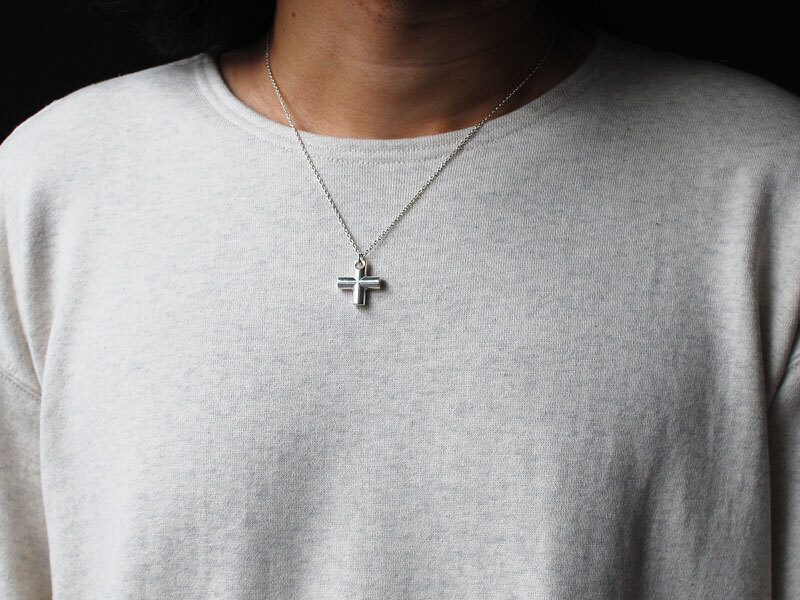 ◆シンプルなクロスをENDらしいフィニッシュで仕上げた立体的なクロスネックレス。