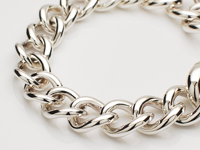 ◆通常のチェーンブレスレットでは磨き上げない腕に当たる裏面までも磨き上げ、艶のある上品さと高級感が出る様に丁寧に仕上げられたブレスレットです。