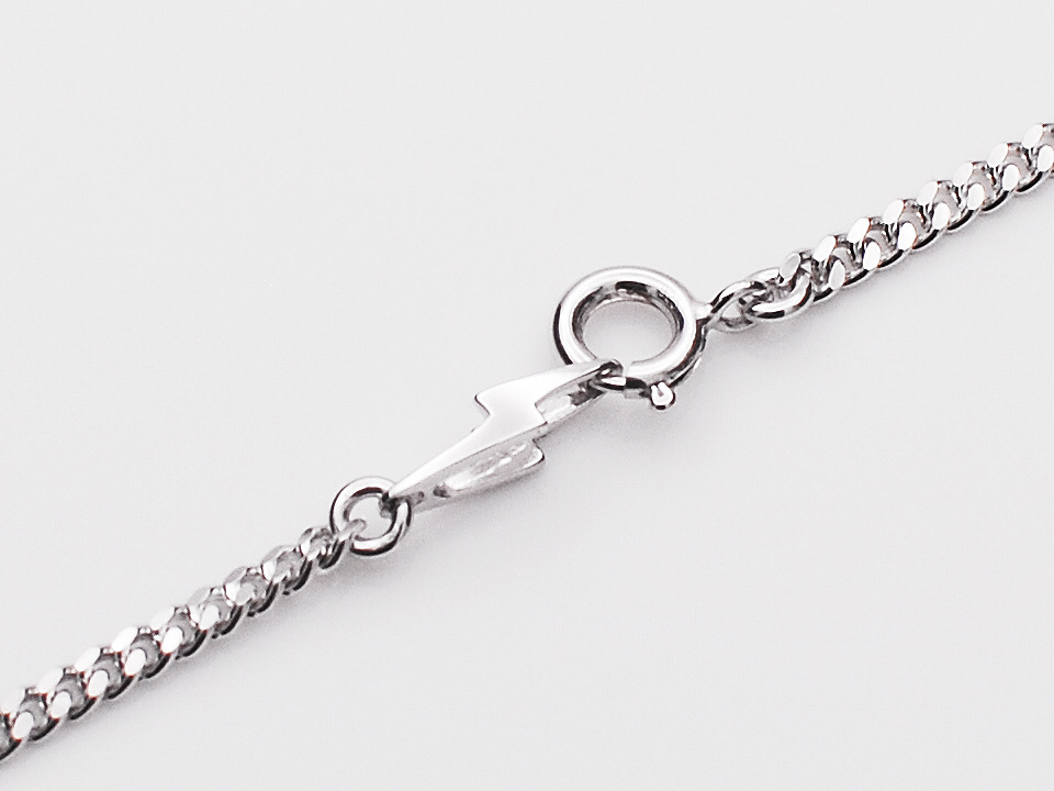 ◆細身の喜平チェーンに『GARDEL』のアイコン『THUNDER』を組み合わせ、ロジウムコーティングをすることで上品な輝きを放つチェーンネックレスです。