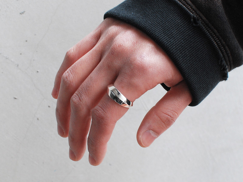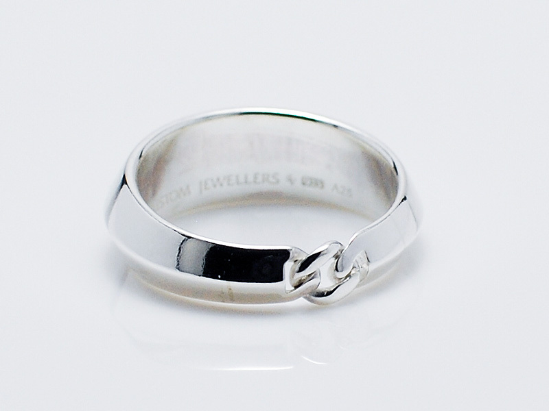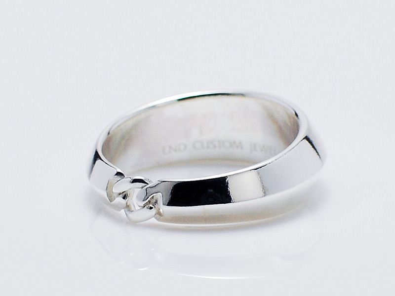 ◆シンプルながらもエッジの効いたリングで、チェーンリンクにアクセントを置いたモデル。