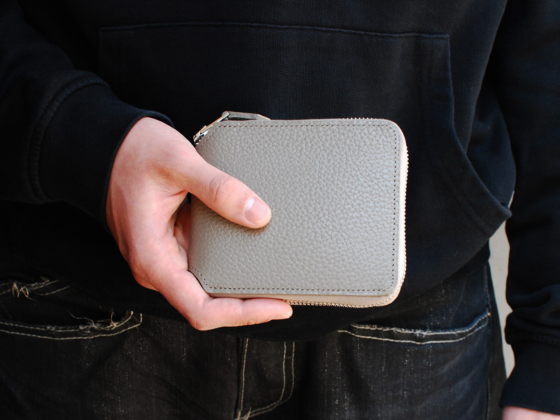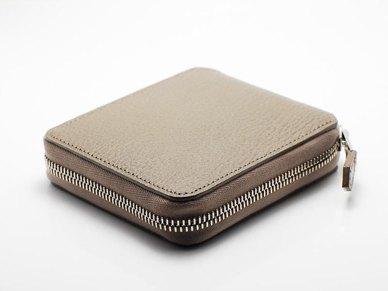 ◆正方形に近いフォルムが特徴的なスクウェアジップウォレット。ミニマルな外観ながら、お札や小銭が豊富に入る使い勝手の良い仕様となっています。表に使用したイタリア産のステアハイドはきめ細やかでしなやかな特徴を持ち、使うほどに手に馴染んでいきます。