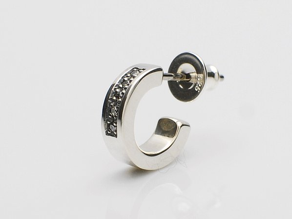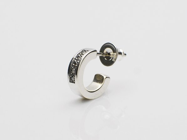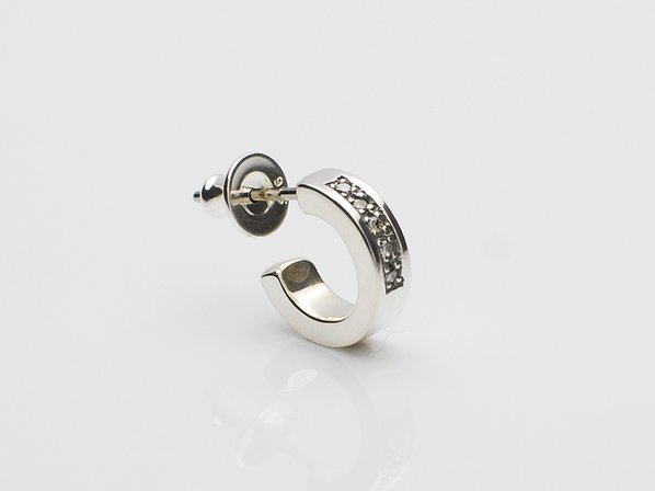 ◆エッジの効いたラインにダイヤを丁寧に施したフープのピアスです。