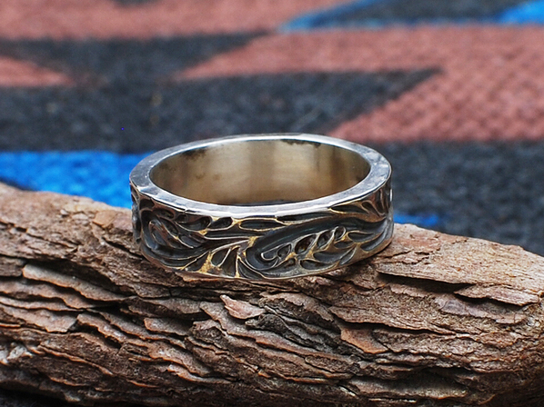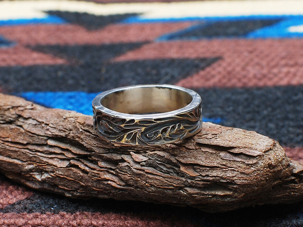 ◆繊細なアラベスク模様を深い彫りで表現しているリングになります。