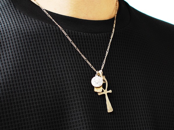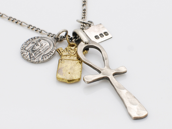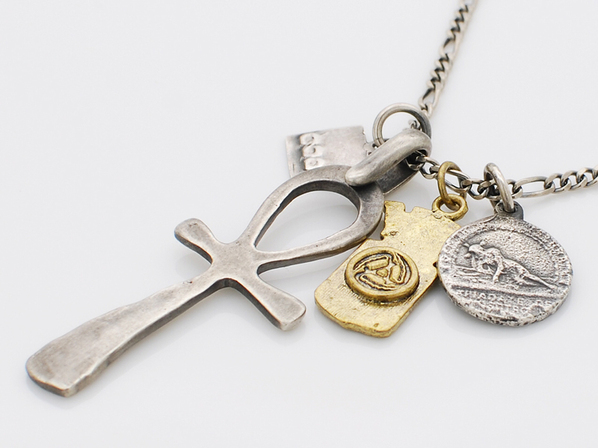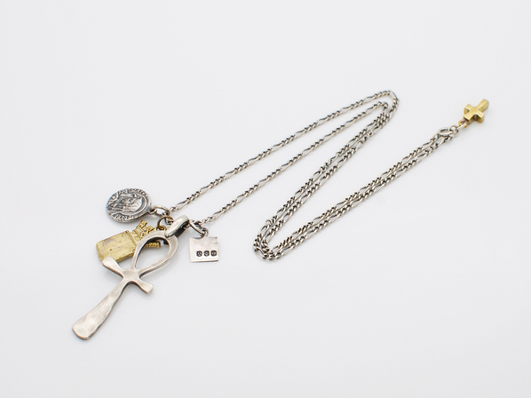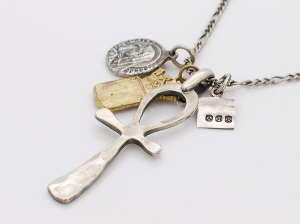 ◆エジプシャンクロスに、ブラスとシルバーで作られたチャームを組み合わせたネックレスです。