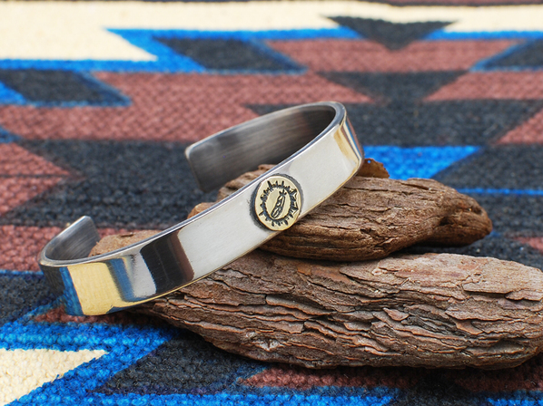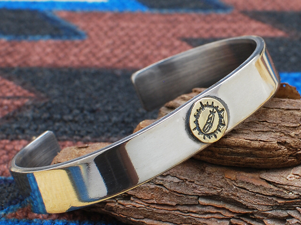 ◆K18イエローゴールドのホークフェザーインゴットを中央にあしらった厚みのあるブレスレットで、程よい幅はシーンを選ばずつける事が出来ます。