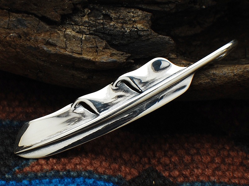◆デザイナーである正木氏が「キャンパスに見立てている」というフェザーは、使い込むほどに傷が入ることで、自分だけの味になり、初めて自分のものになるという、まさにネイティブ・スピリットらしいアイテムです。(縦:6cm/横:1.1cm)