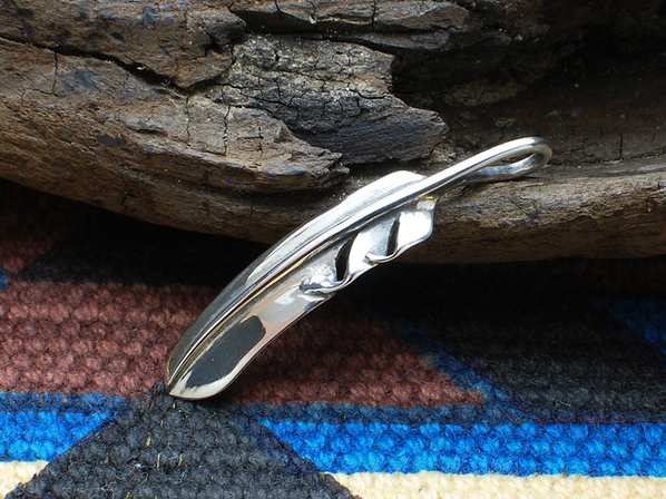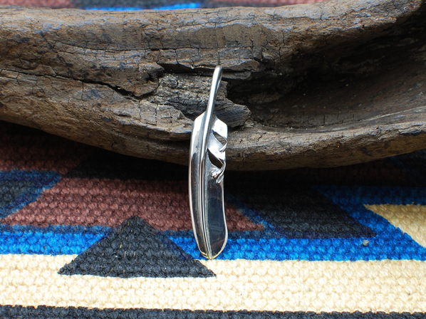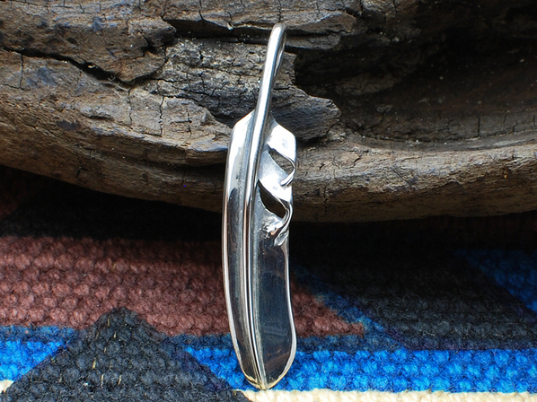 ◆デザイナーである正木氏が「キャンパスに見立てている」というフェザーは、使い込むほどに傷が入ることで、自分だけの味になり、初めて自分のものになるという、まさにネイティブ・スピリットらしいアイテムです。(縦:4.7cm/横:0.9cm)