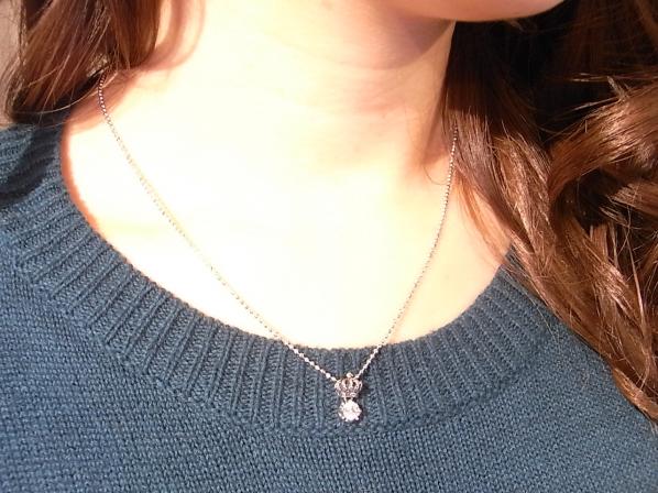 ◆シャイニー(輝く)加工されたクラウンの下に、ジルコニアが揺れるエレガントなプチネックレスです。