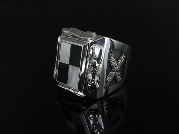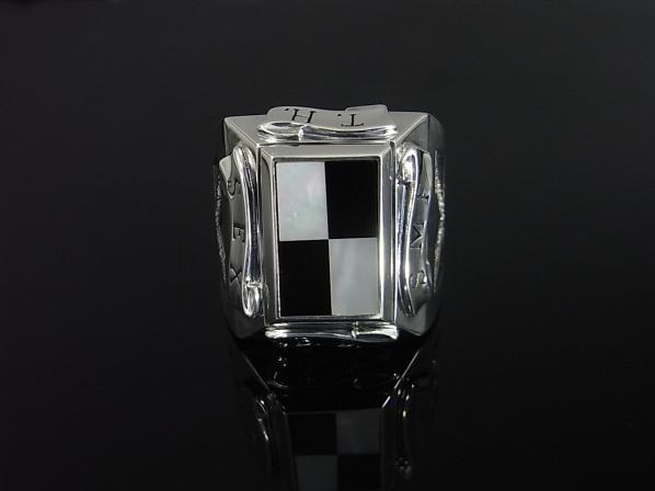 ◆白蝶貝とオニキスのコントラストが美しい、重厚感のあるリングです。